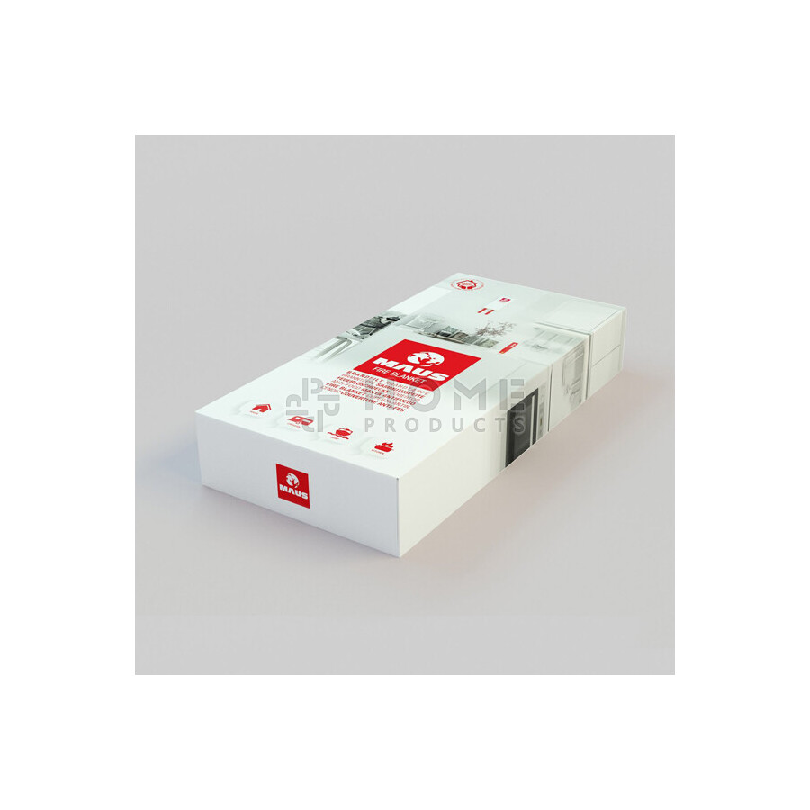 De deken is 1,20 meter x 1,80 meter, waardoor deze groot genoeg is om eventueel een brandende persoon in te rollen. De branddeken is gemaakt van fiberglas. De wanddoos waar de deken in zit is uitgevoerd in wit, glanzend pianolak.